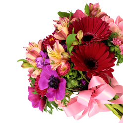 • Стандарт - роза - 3 шт., альстромерия - 5 шт., зелень, упаковка, лента