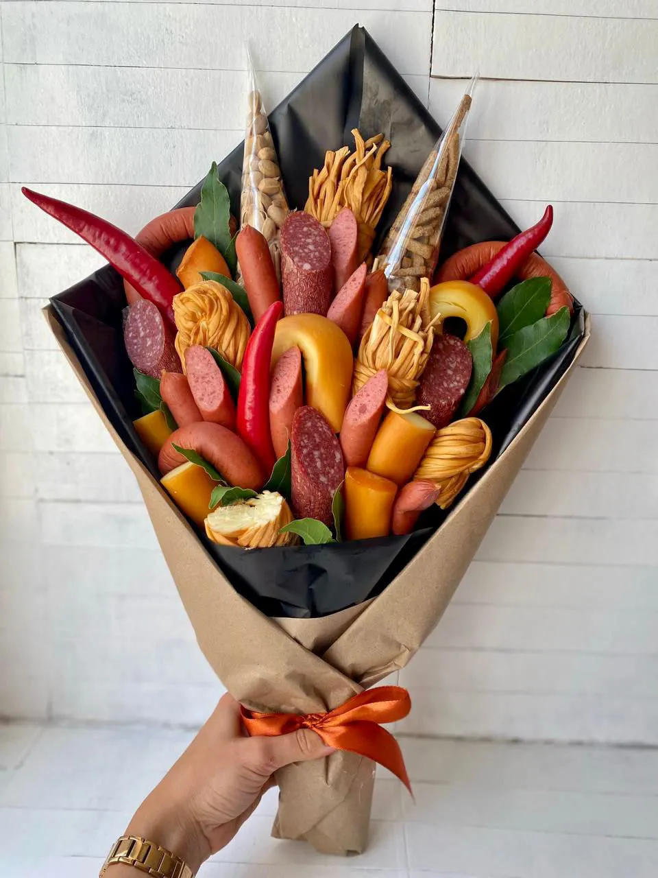 Каждый съедобный букет выполняется индивидуально, поэтому возможно отличие от фото, но стилистика остается неизменной.