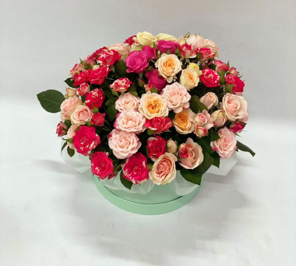 - Стандарт - 11 кустовых роз, коробка, оазис