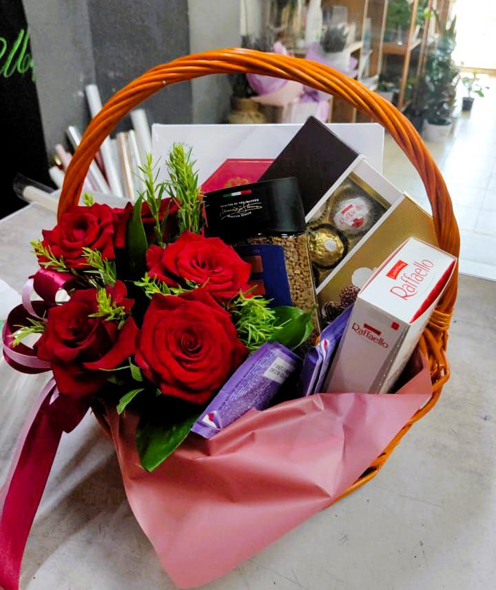 Подарите своим близким сладкую корзину с конфетами и розами — это превосходный способ выразить свои чувства и поднять настроение! Ваша корзина станет символом любви и заботы, сочетая в себе яркие цветы и нежный вкус сладостей.