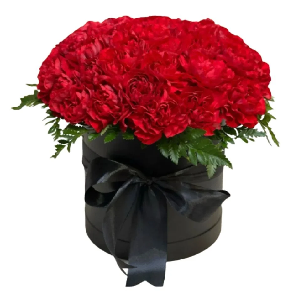 - Премиум - гвоздика - 40 шт., оазис, шляпная коробка