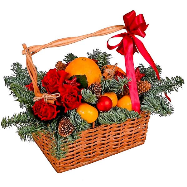 Состав: розы, мандарины, апельсины, нобилис, декор, корзина |