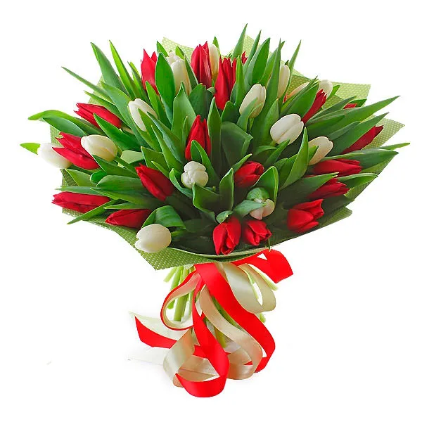 Букет красно-белых тюльпанов Яркая история
